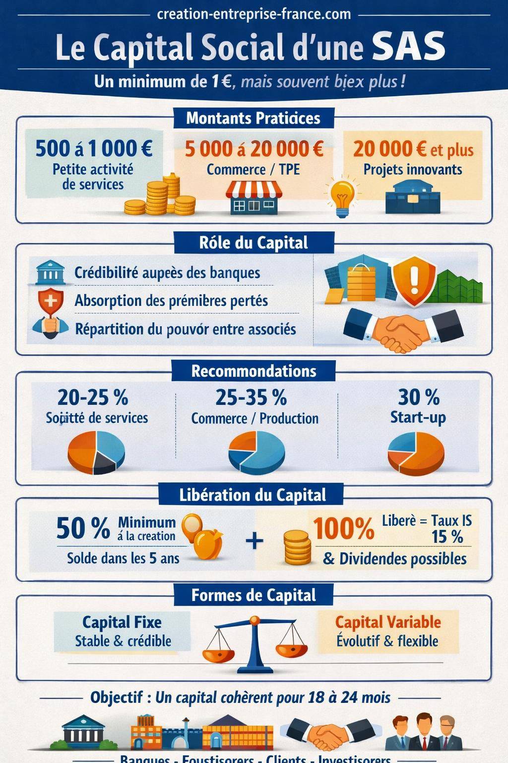 Ces pourcentages ne remplacent pas une étude chiffrée, mais fournissent un cadre décisionnel. Ils contribuent à dimensionner un capital cohérent avec la structure des coûts et le modèle économique de la SAS.