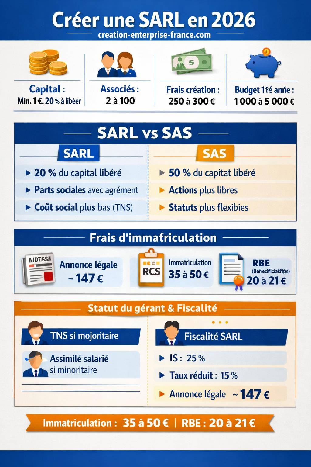 Au total, le budget global de la première année pour une nouvelle SARL, incluant formalités de création, accompagnement et premiers frais de fonctionnement, se situe souvent entre 1 000 € et 5 000 € selon l’ampleur du projet.