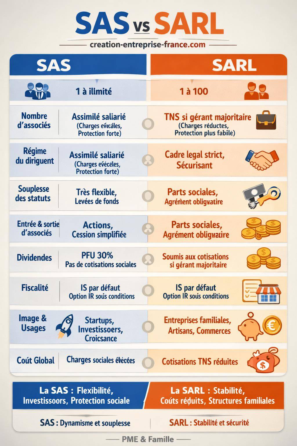 Tableau comparatif simple et clair SAS vs SARL