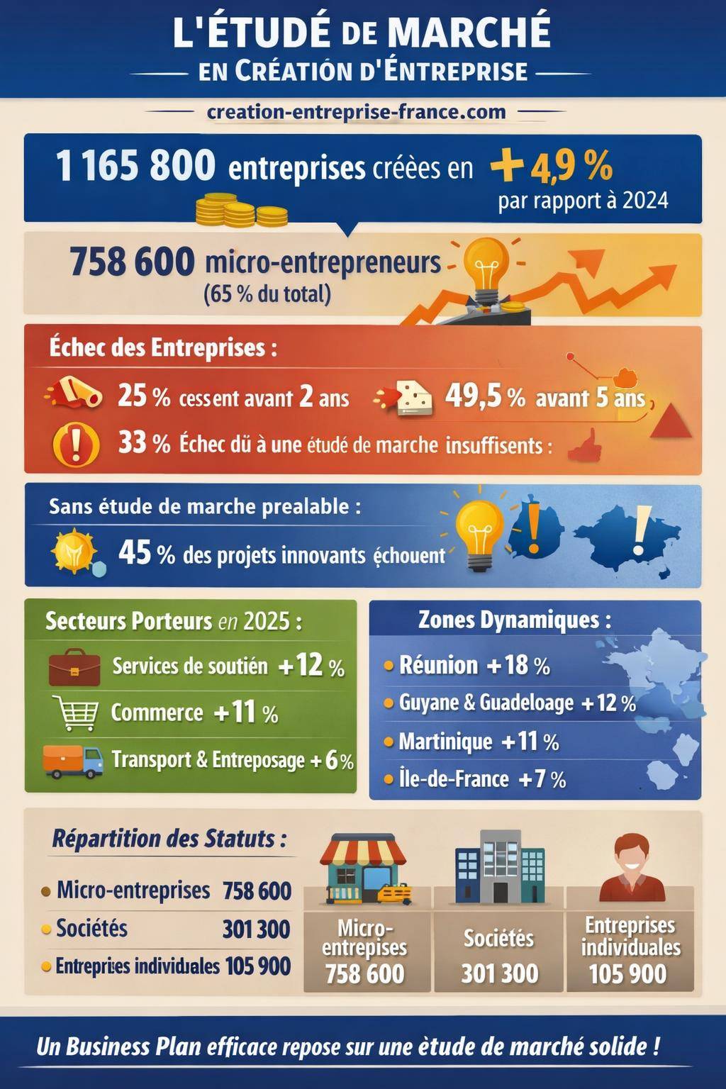 En 2025, plus de 1 165 800 créations d’entreprises ont été enregistrées en France, selon les données que je consulte. La dynamique reste soutenue, mais un chiffre interpelle : près de 1 projet sur 3 échoue à cause d’une étude de marché mal menée ou inexistante. Derrière chaque fermeture prématurée, on retrouve souvent la même erreur : avoir lancé une offre sans preuve solide de la demande ni vision claire de la concurrence.