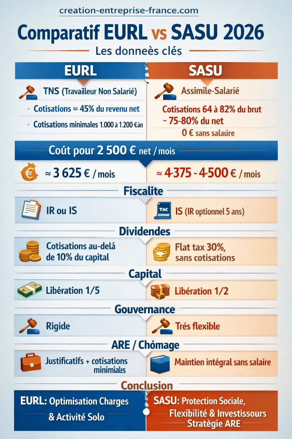 EURL ou SASU en 2026 : résumé comparatif chiffré