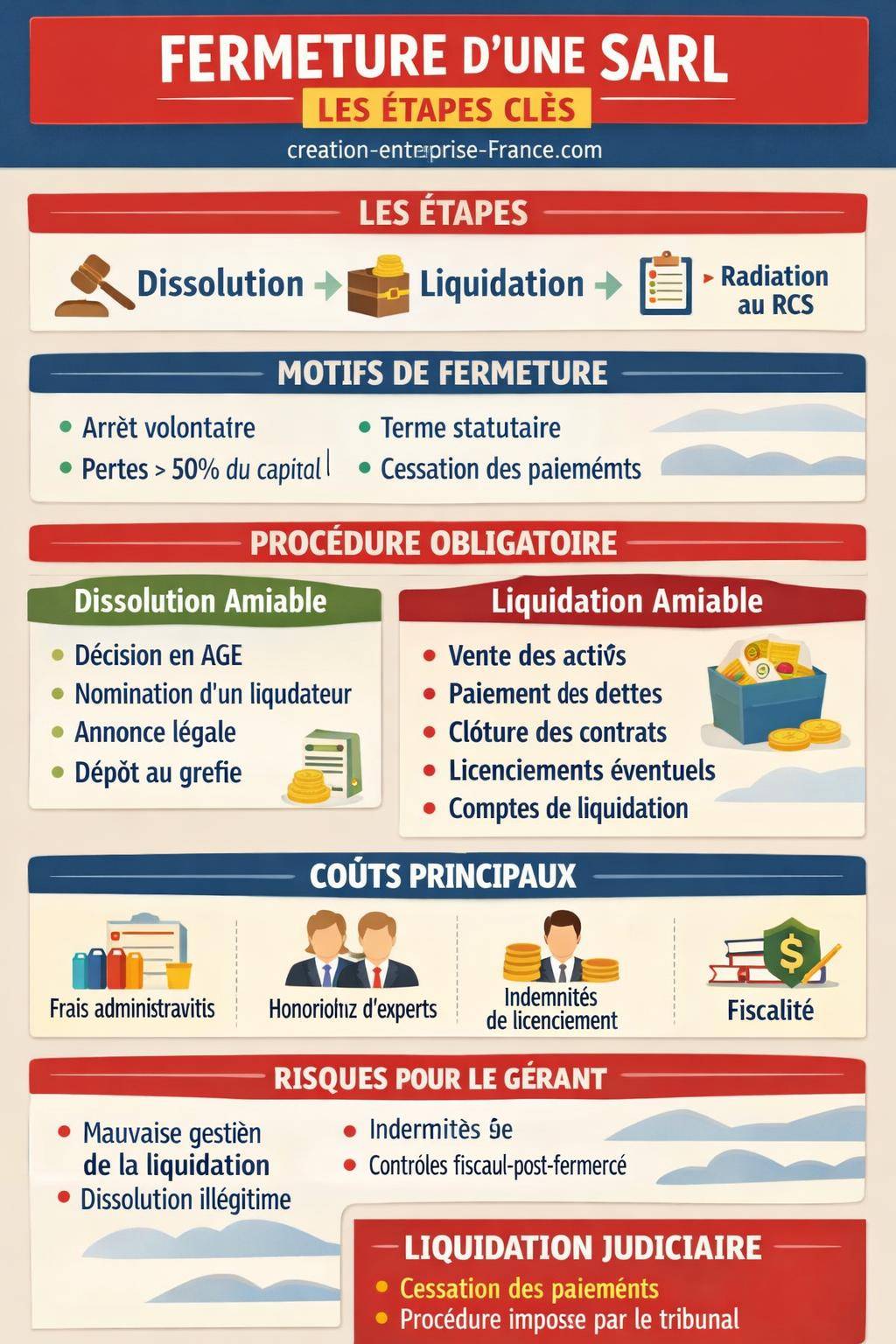 Une SARL se ferme pour plusieurs raisons. Le motif choisi influe sur la procédure, le calendrier et certains coûts à prévoir.