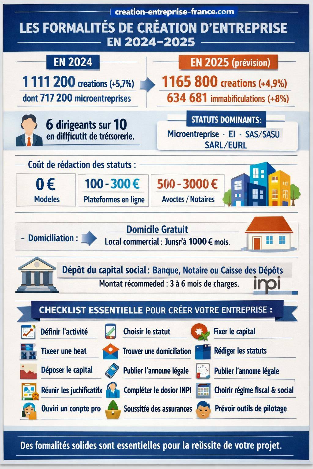 Ce contexte rappelle un enjeu central : la qualité des formalités de création conditionne la solidité du projet. Un statut mal choisi, un capital insuffisant, des clauses de statuts imprécises ou des démarches incomplètes créent des fragilités juridiques et financières dès le démarrage.