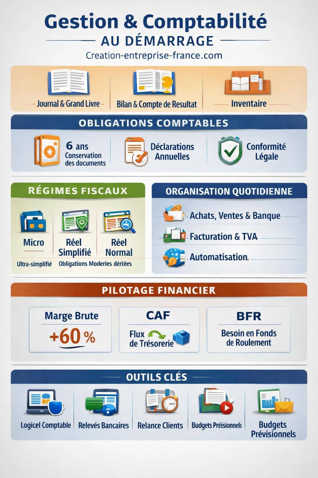 Ce guide déroule, étape par étape, les bases concrètes de la gestion et de la comptabilité d’entreprise. Au fil des sections, vous verrez comment structurer vos flux financiers, choisir vos outils, respecter vos obligations comptables et organiser votre pilotage pour avancer sereinement.