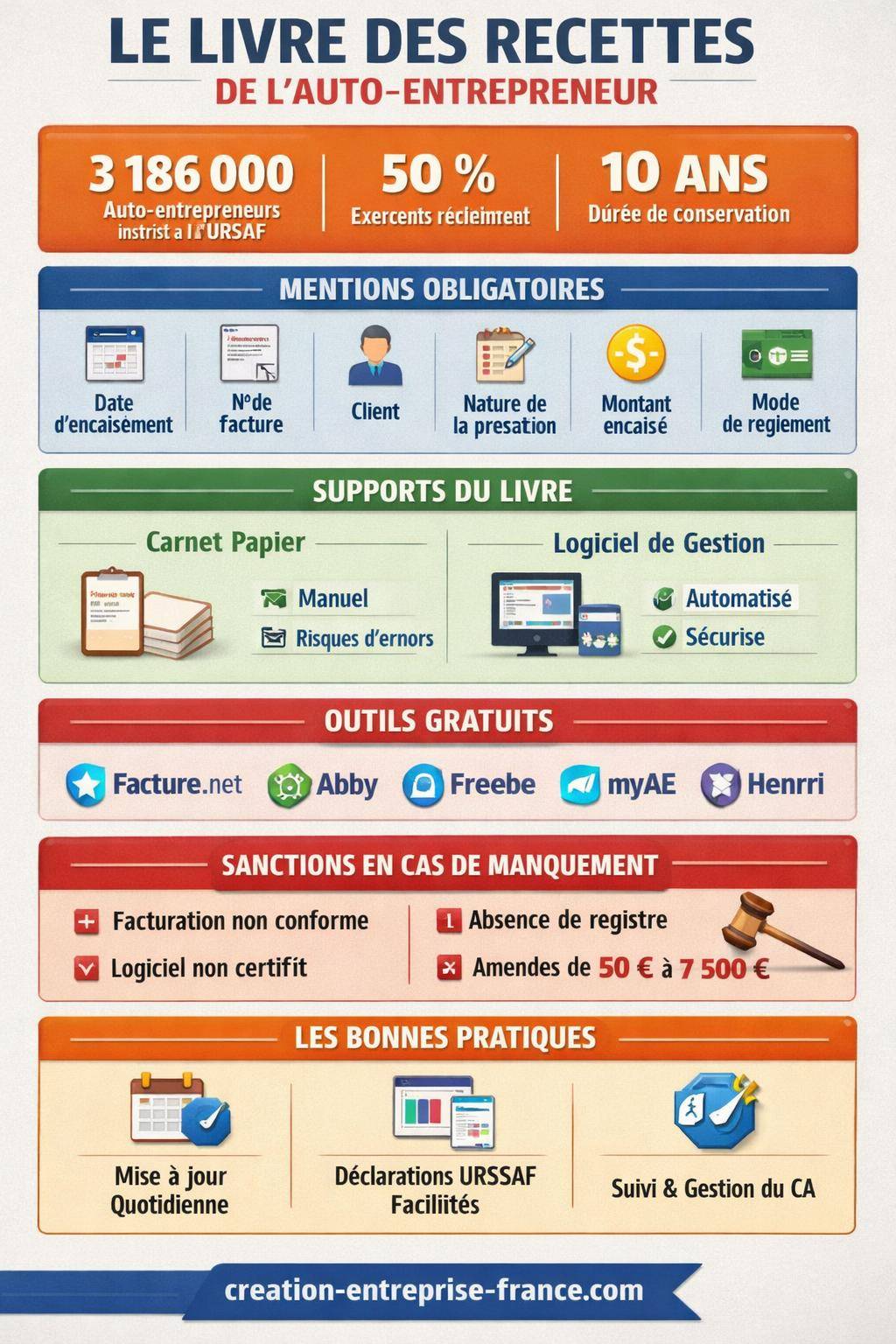 Un livre des recettes bien tenu, alimenté par un outil de facturation conforme, contribue à sécuriser ces obligations : même en cas de bug ou d’erreur ponctuelle, tu disposes d’un historique clair pour justifier ton chiffre d’affaires.