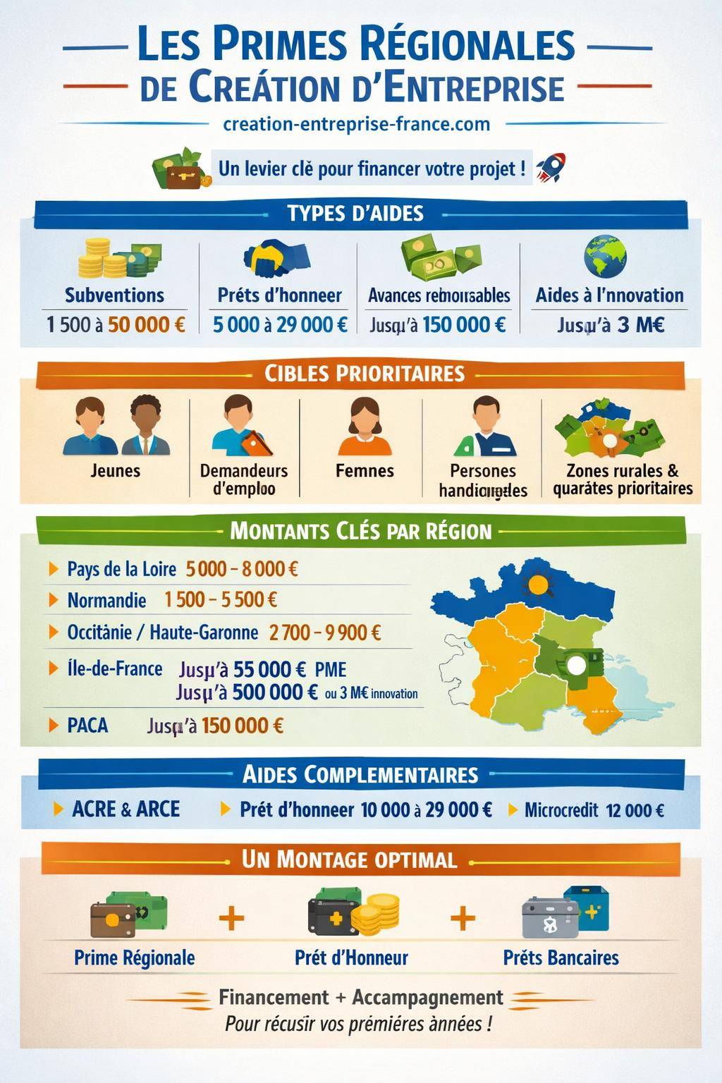 Pour une vue plus large de l’écosystème des aides ciblées par territoire, un contenu récapitulatif sur les aides régionales à la création d’entreprise permet de compléter l’analyse détaillée par région.