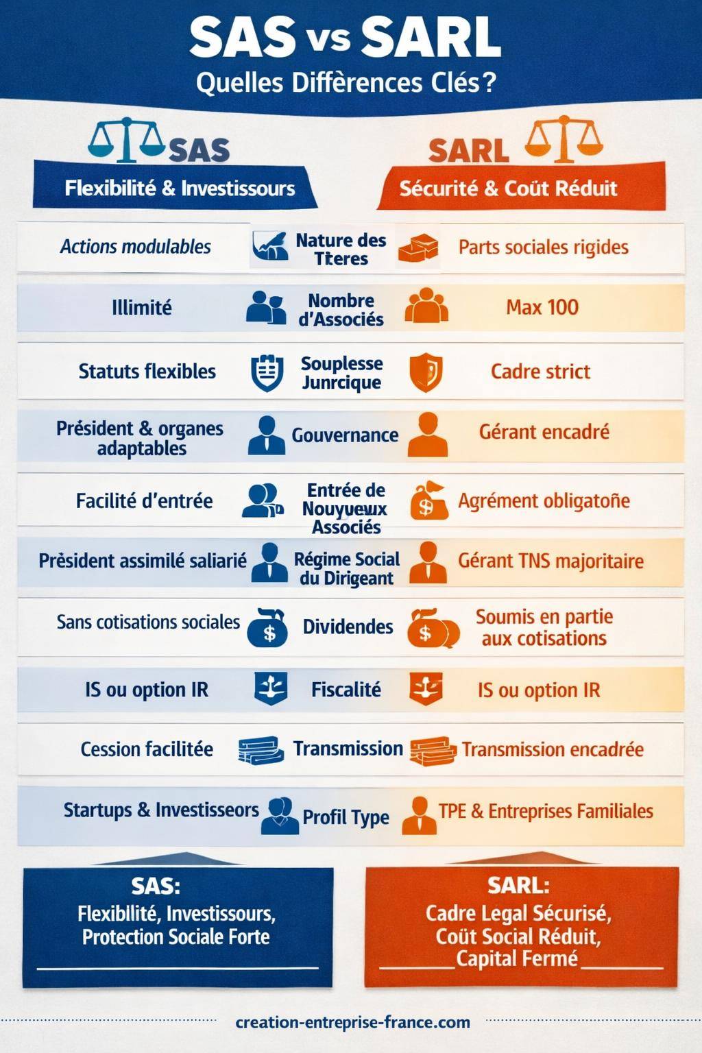 Le tableau suivant regroupe les grandes différences entre SAS et SARL pour aider à structurer ton analyse.